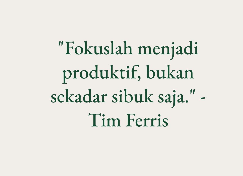 6. “Fokuslah menjadi produktif, bukan sekadar sibuk saja.” – Tim Ferris